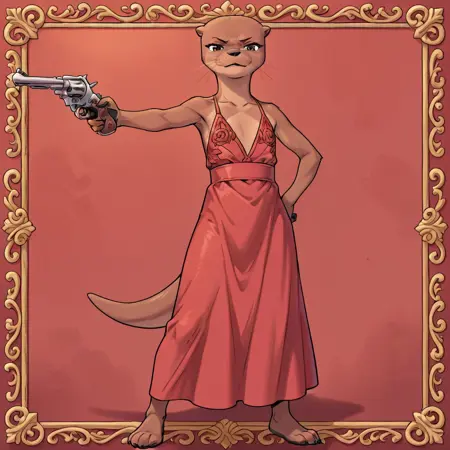 otter, otter girl, brown fur, brown eyes, black nose, whiskers, otter tail, flat chested,