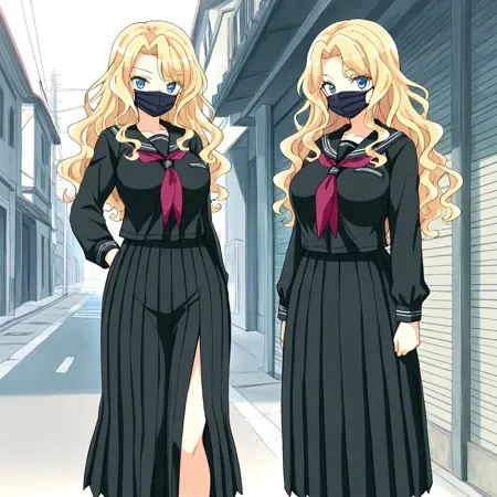 Extra: pleated skirt, long skirt, mouth mask, black serafuku, skirt slit