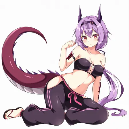 Naga: Pockegal, 021_narga, purple hair, red eyes, dragon tail, dragon girl, very long hair, low ponytail, medium breasts
