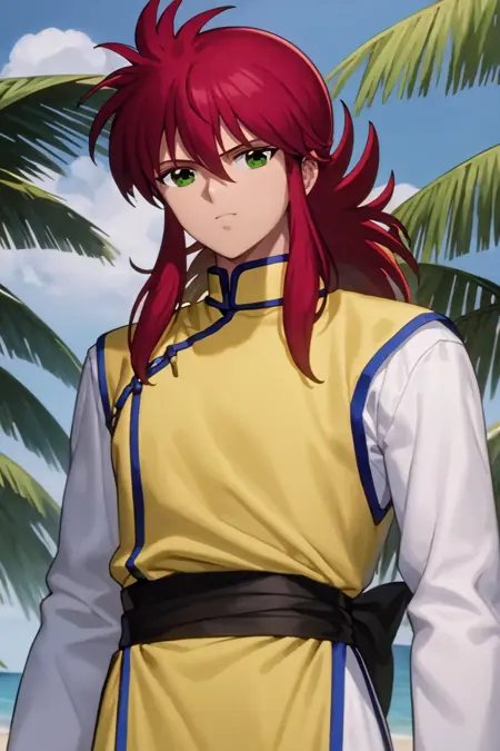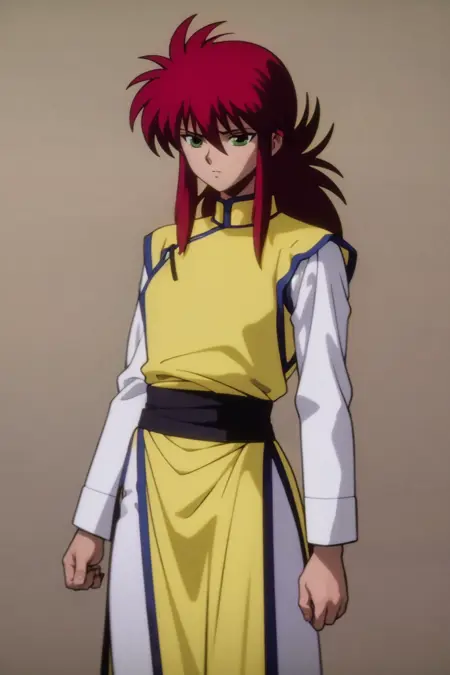 服装2提示词:kuramaalt, yellow chinese clothes, white long sleeves, white pants