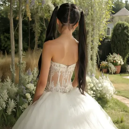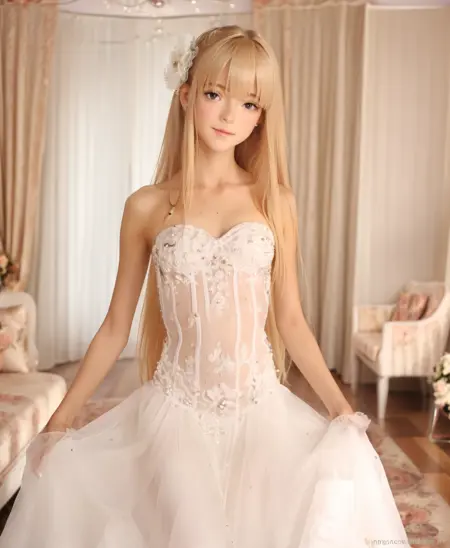 This wedding dress Lora focuses on showcasing the semi-transparent lace effect at the waist, works well with both front and back views of characters.