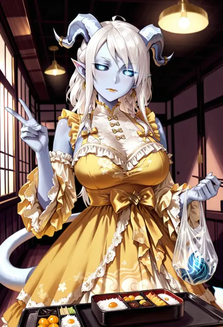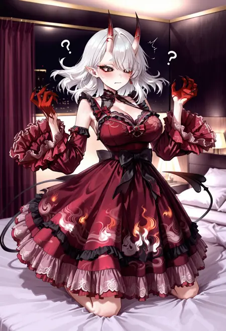 트리거 단어: ninetailedfoxdress, 드레스, 분리된 소매, 프릴, ninetailedfox 프린트, 활, 어깨 절개, 퍼프 치마, 레이스,