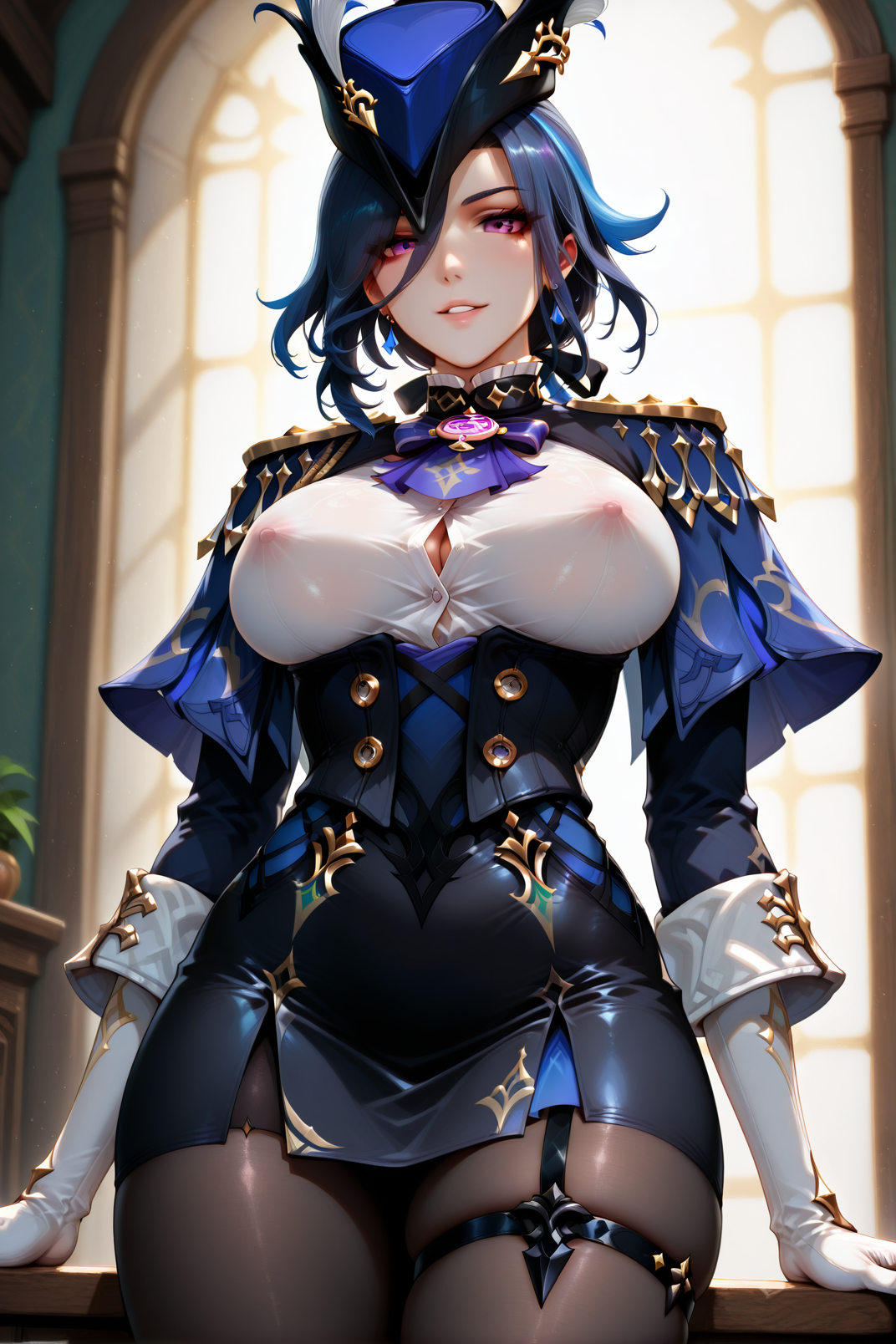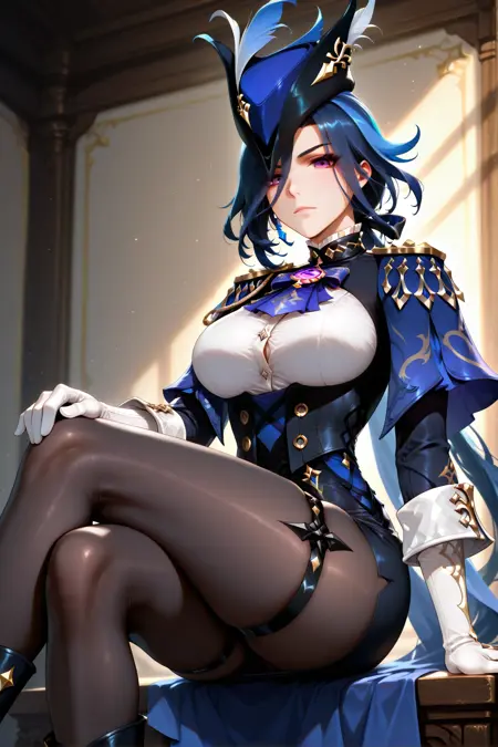 ilclorinde, 1girl, breasts, 1boy, sex, pantyhose, hat, nipples, hetero, vision \(genshin impact\), clothed female nude male, nude, cum, large breasts, long hair, open mouth, clorinde \(genshin impact\), x-ray, blue hair, torn clothes, cum in pussy, blue headwear, dark-skinned male, blush, tricorne, ascot, gloves, ahegao, internal cumshot, uterus, tongue, penis, blue ascot, purple eyes, long sleeves, tongue out, vaginal, black corset, breasts out, black pantyhose, ejaculation, white shirt, faceless, dark blue hair, dark skin, hat feather, torn pantyhose, epaulettes, faceless male, standing, shirt, sex from behind, corset, clothed sex, from side, low ponytail, blue cape, rolling eyes, white gloves, cape<lora:illustrious Clorinde 768x1152:1>room