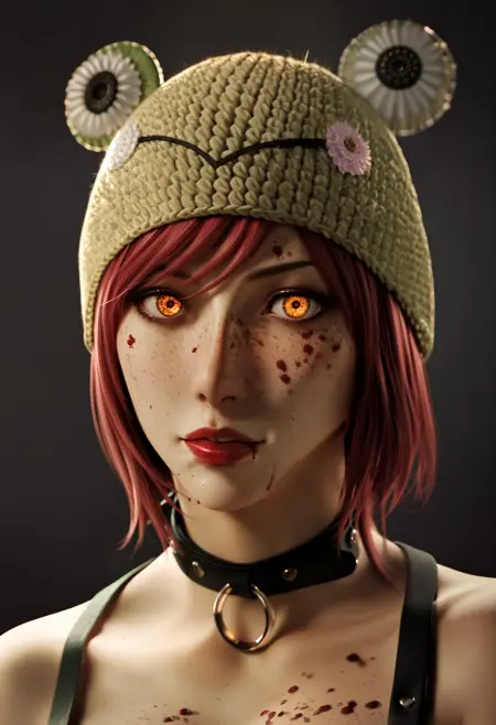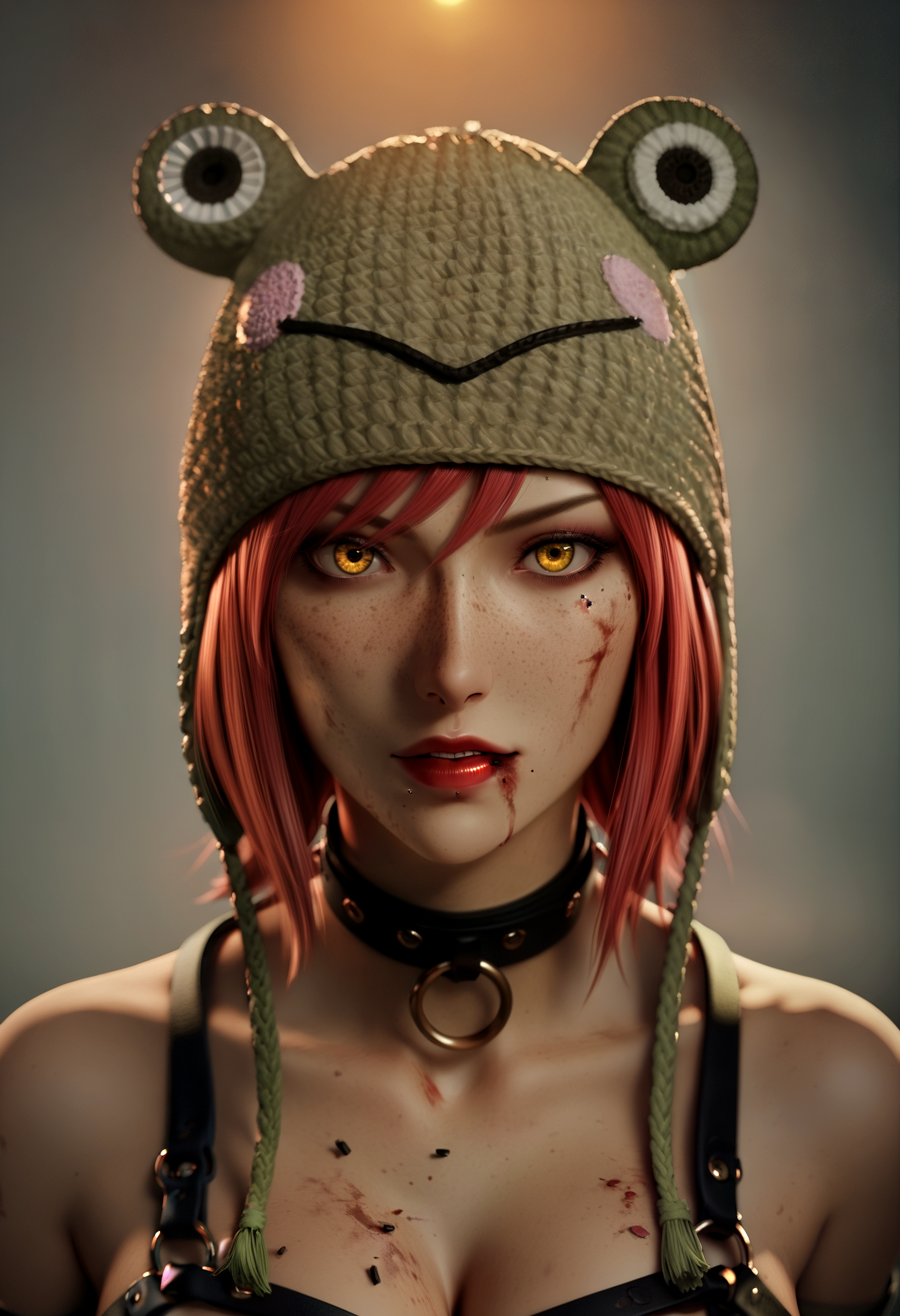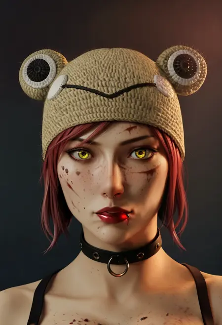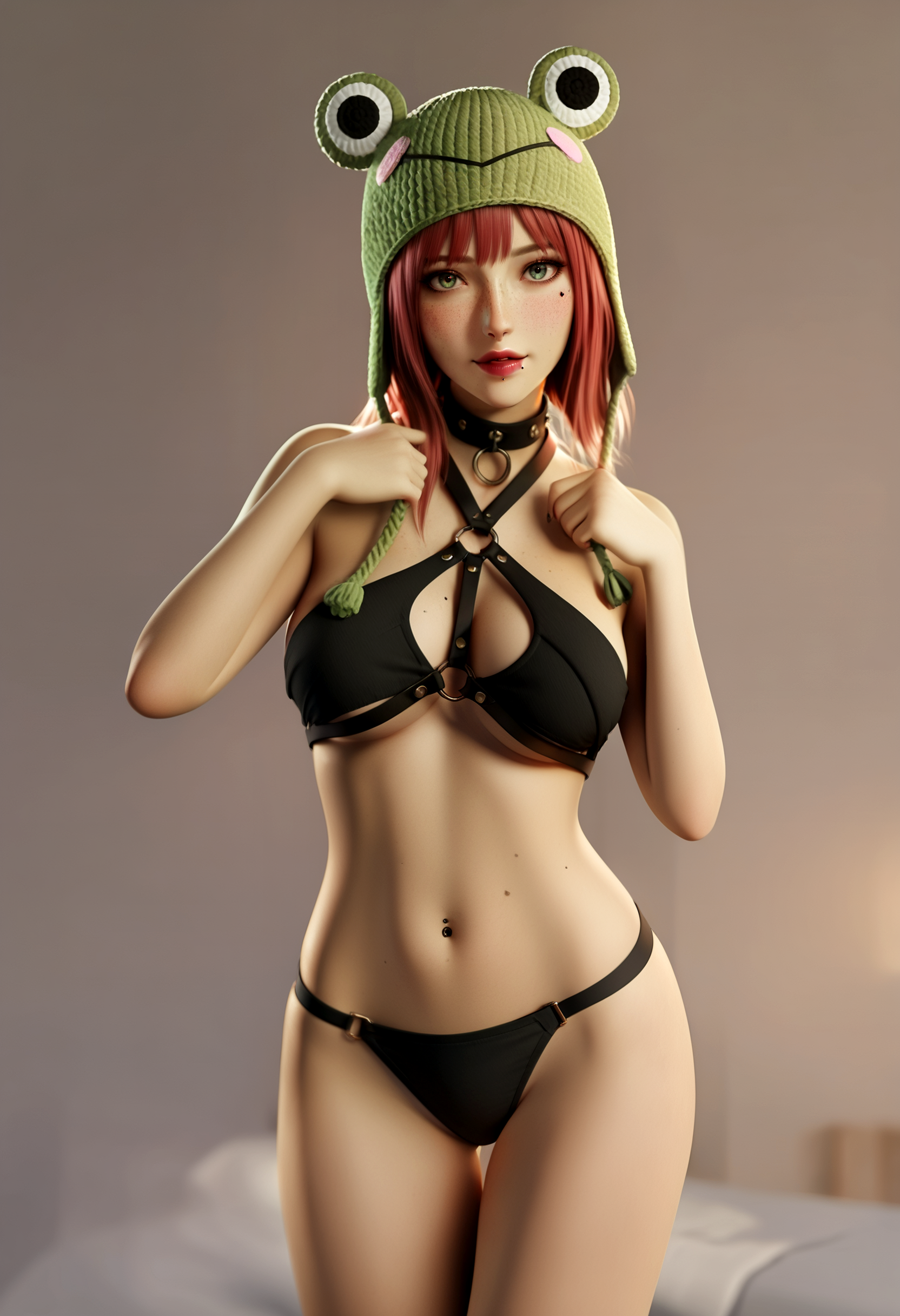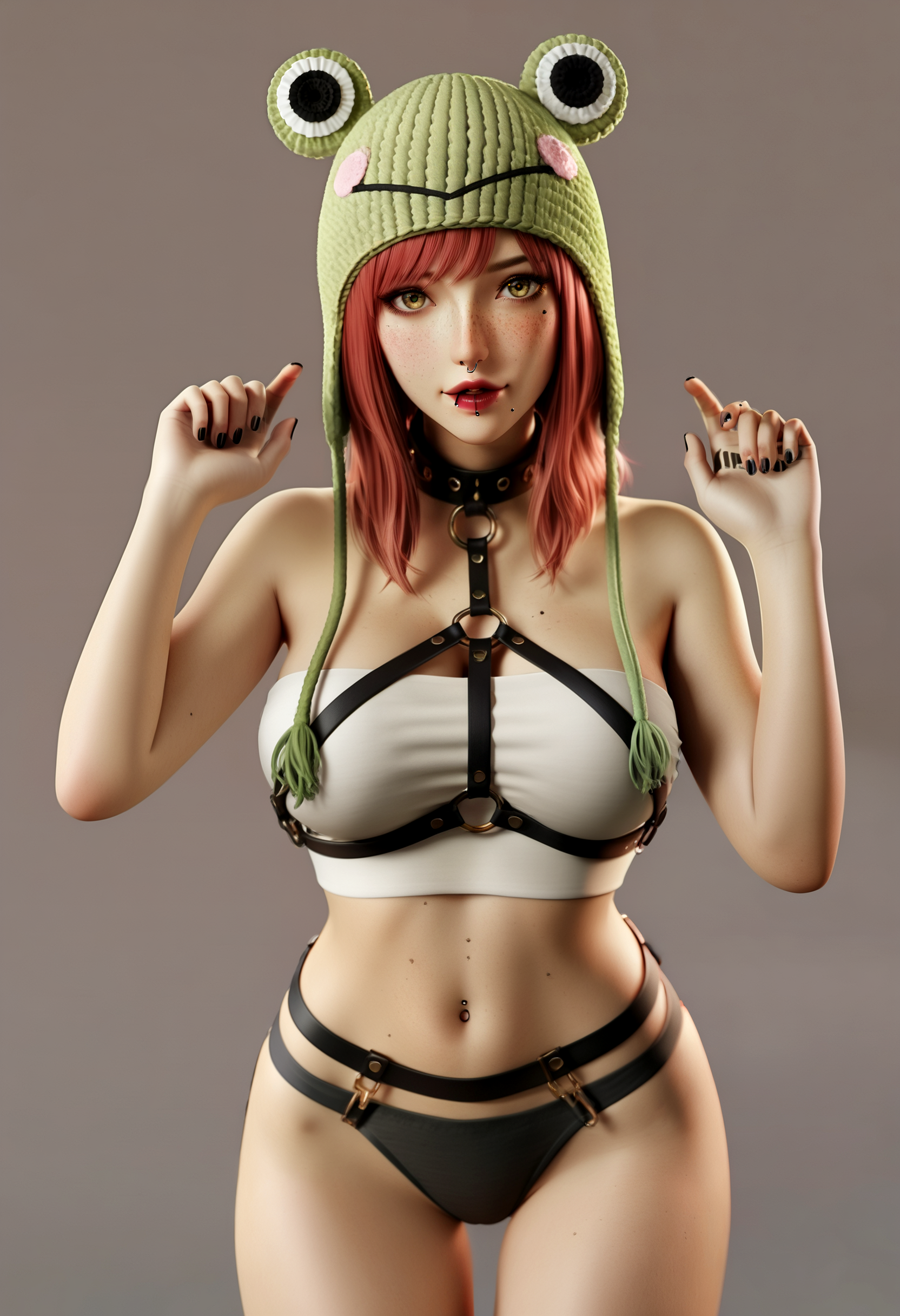 Furoppi (フロッピー) — chaotic frog princess from the bimbo multiverse. A mix of leather, lace, and pixel dust. She’s all peace signs and collar snaps — a softcore menace in frog disguise.