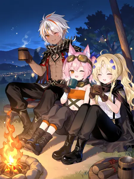 角色2标签:Albaz,条纹发,单眼闭合,眼部疤痕,尖耳,额饰,深色皮肤,