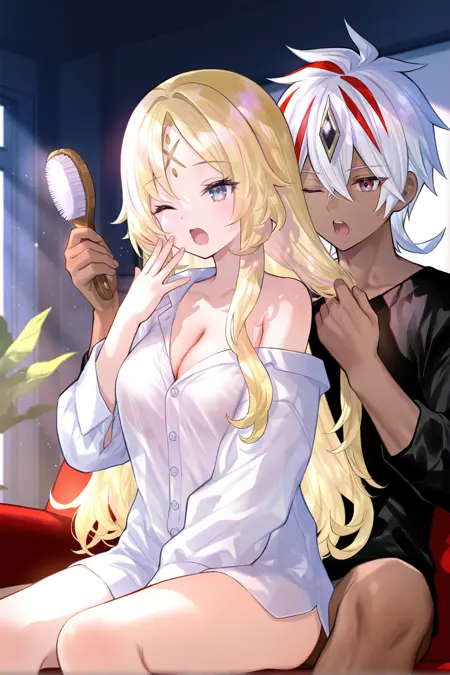 タグ(キャラクター1の髪):ポニーテール,編み込み