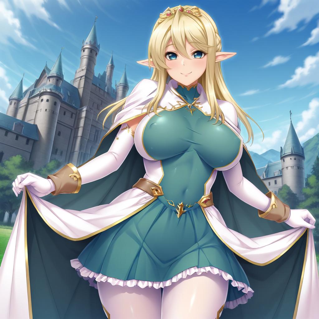- Ephildis Agraliel: 1girl, ephildis, blonde hair, green eyes, pointy ears, elf,