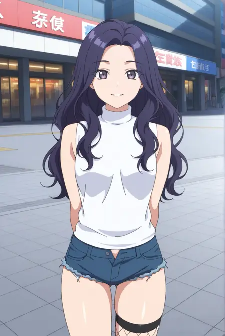 <lora:JinyuYan-IL-v1-08:0.9>, ChopioJinyu, 長い髪, 波状の髪, 濃い紫の髪, 光沢のある髪, 紫の目, 視線を観客に向けた、