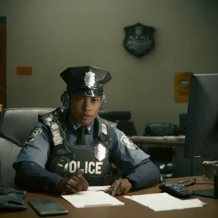 Creates an African American female NCPD officer, trigger word ncpdFLUX/ncpdXL respectively