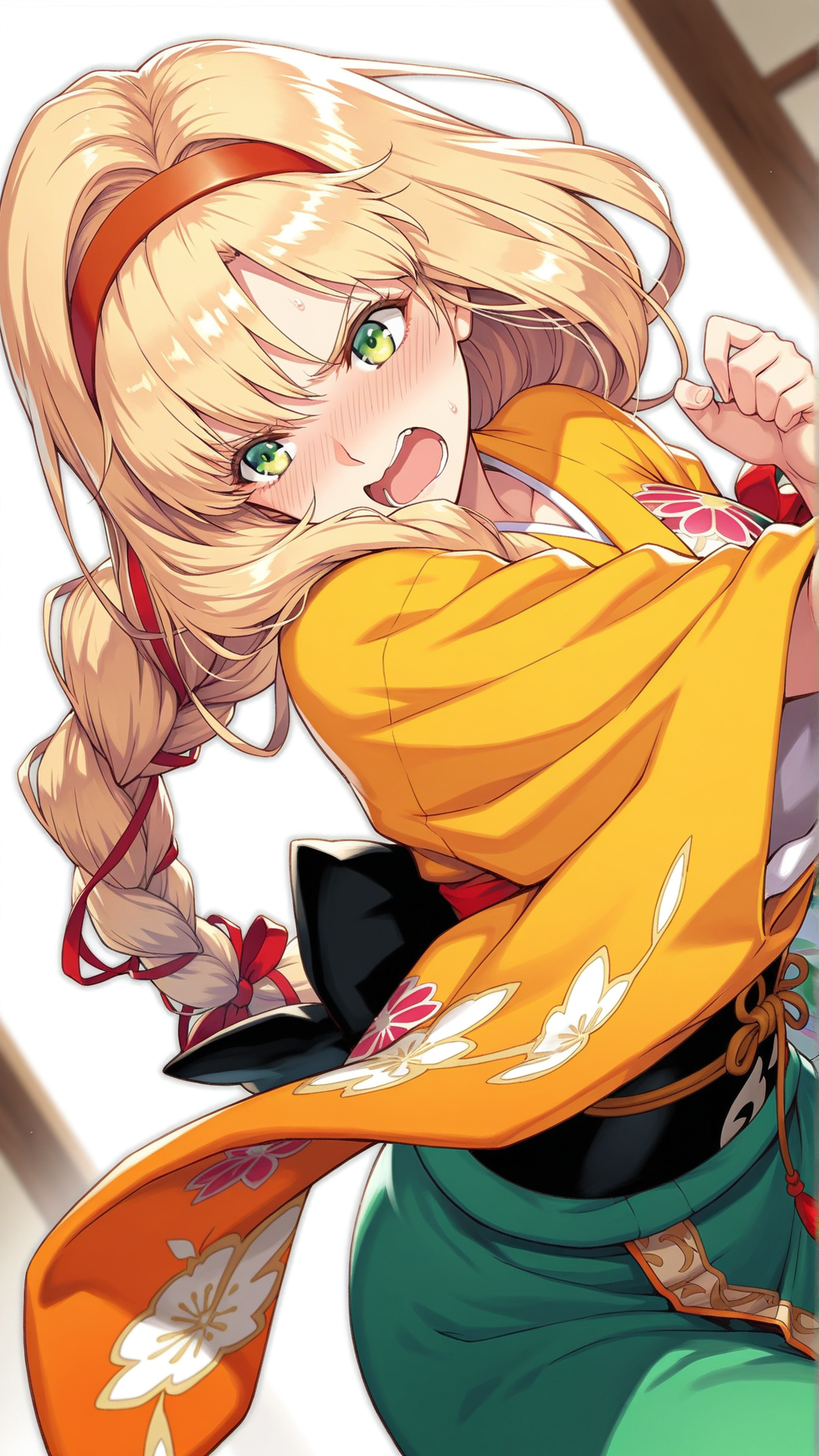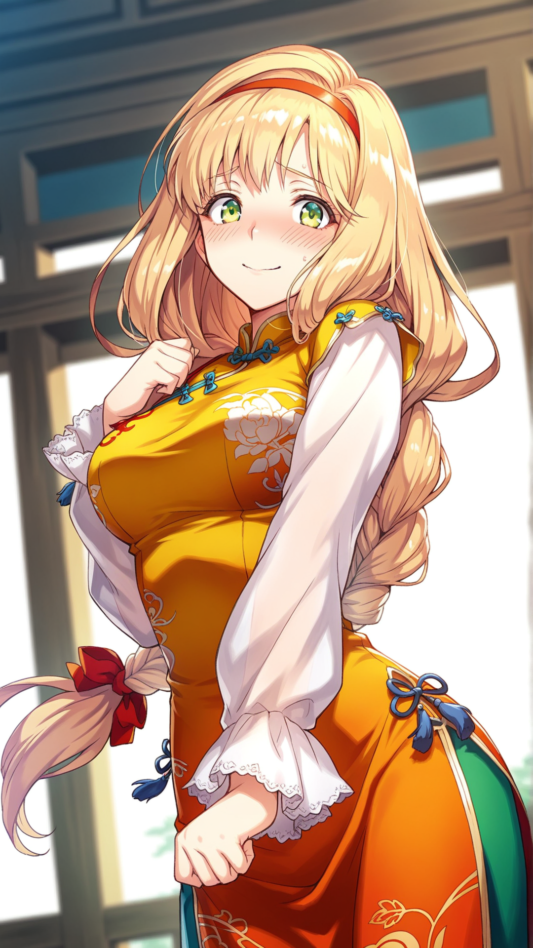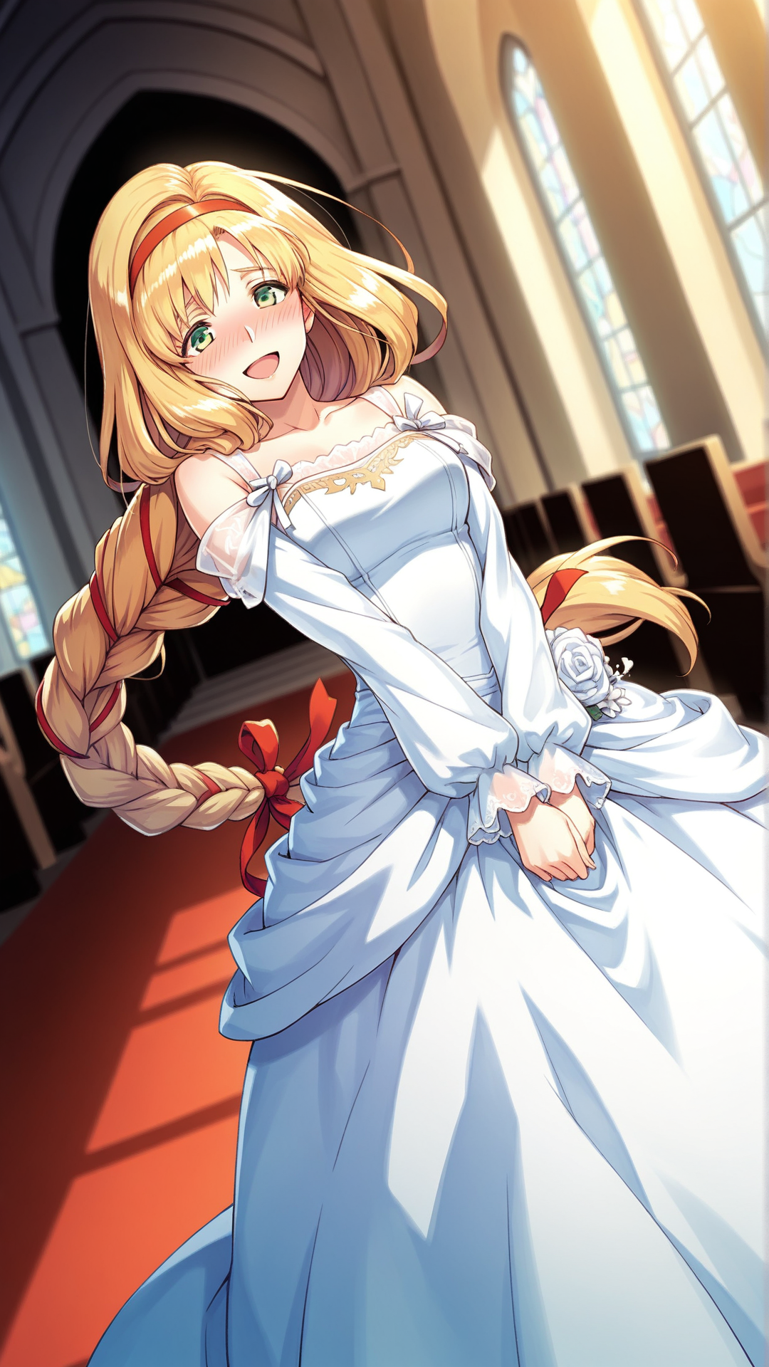 Appearance:blonde hair, very long hair, green eyes,braid,