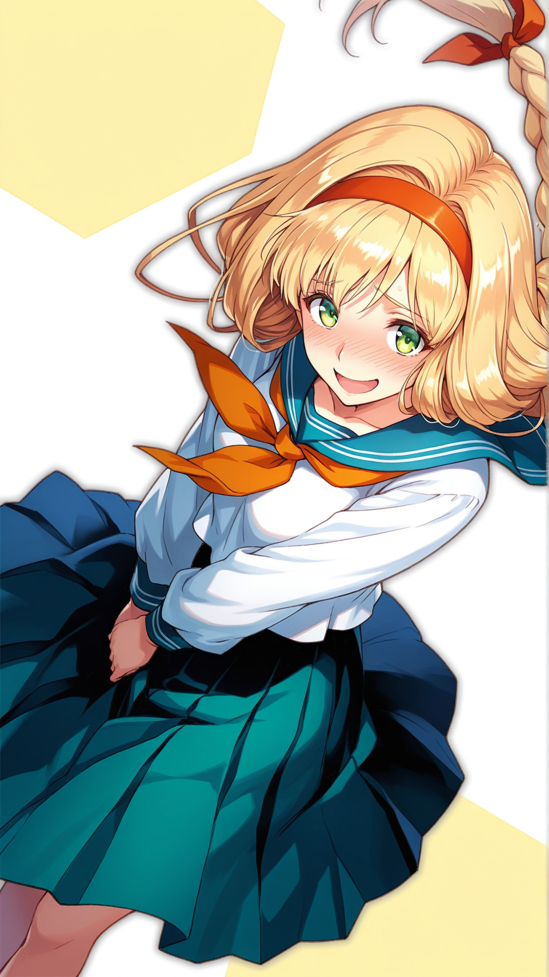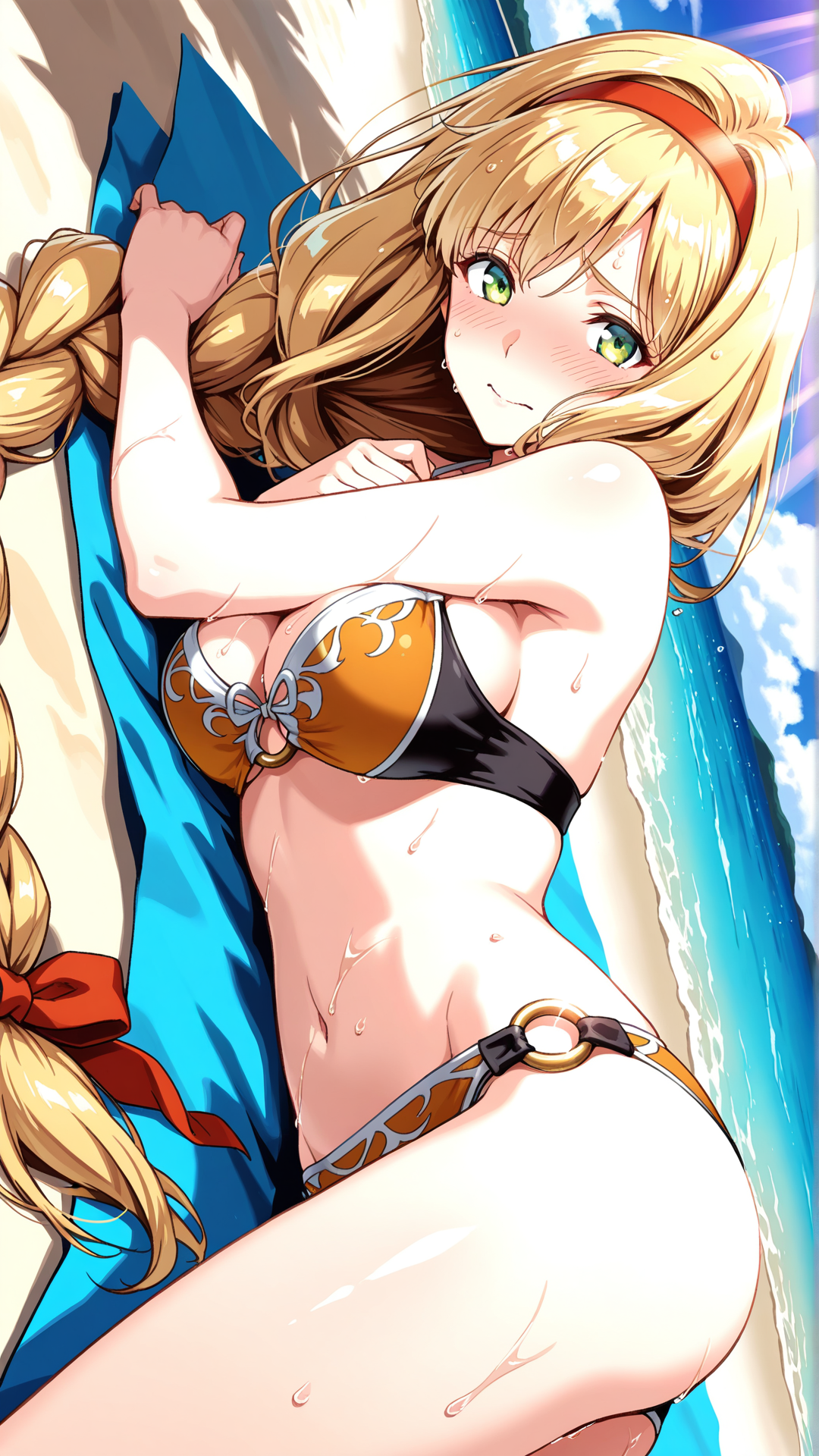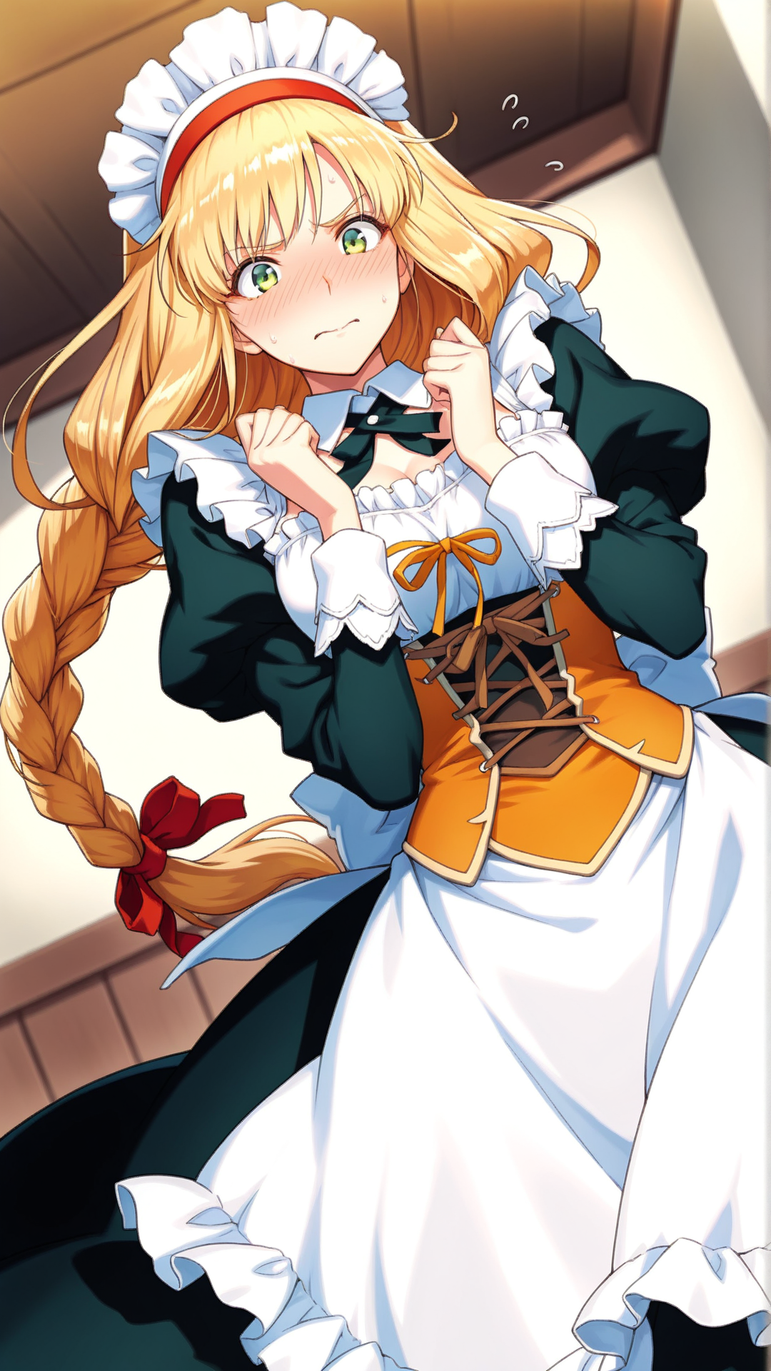 Appearance:blonde hair, very long hair, green eyes,braid,