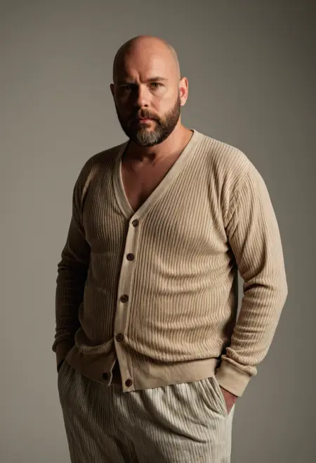 A once-prominent hypnotist turned cult leader, Harlan Grieves is an unnerving presence: heavyset with a rotund frame, sickly pale skin, and wiry body hair that seems to writhe under dim light. His bald head gleams under flickering bulbs, while his patchy, unkempt beard clings desperately to his jowls. Piercing almond-shaped eyes stare with predatory intent, hinting at a fractured mind somewhere between madness and malevolence. Whispers say he communes with things best left unnamed, his gaze alone enough to make weaker souls avert their eyes.