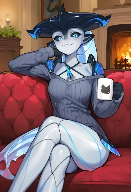 추천 긍정 키워드: slcmle, 파란 눈, 검은 공막, 가슴 스파이크, 팔 날카로운 칼*, 다리 날카로운 칼**, 비키니 상의, 하의 없음, 성기 없음