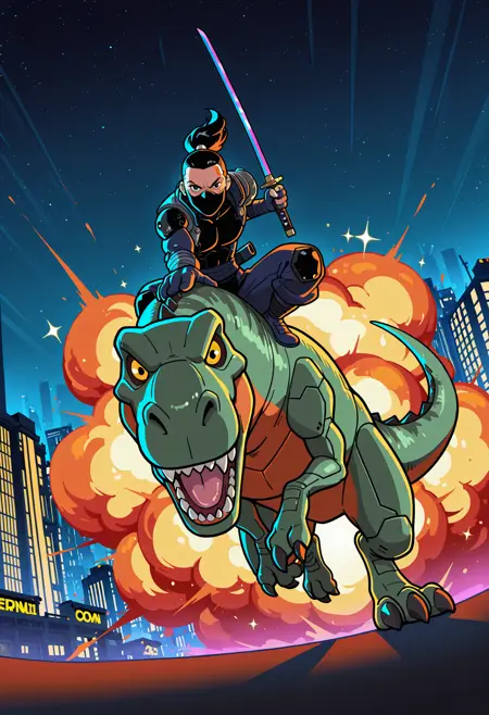 展示中包含了一些使用Comicbook Style或Toon提示词的示例,以展示它们带来的视觉差异。