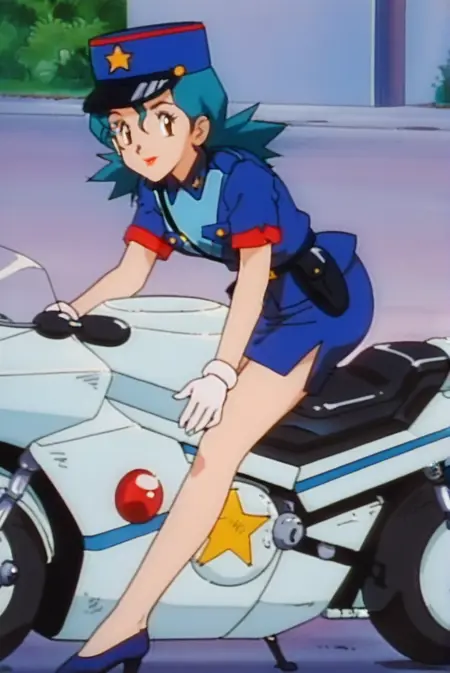 <lora:OfficerJenny-IL-v1-08:1.0>, ChopioJenny, 중간 길이 머리, 청록색 머리, 뒤집힌 머리, 눈 사이의 머리카락, 갈색 눈, 속눈썹, 붉은 입술, 립스틱, 보는 시선,