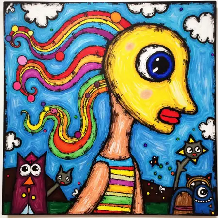 Handmade Abstract Art is a LoRa distilled entirely from my finished pieces—zero borrowed brushstrokes, 100 % personal pigment. It turns any prompt into a burst of chunky colour blocks, bold black outlines, and playful symbolism: wide-eyed suns, storytelling shapes, pop-surreal portraits, and feel-good chaos that still knows where the edges of the canvas are.