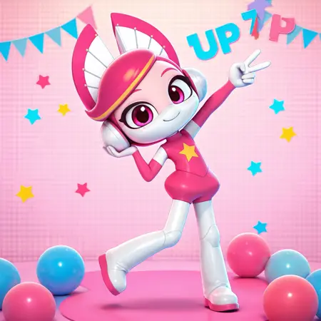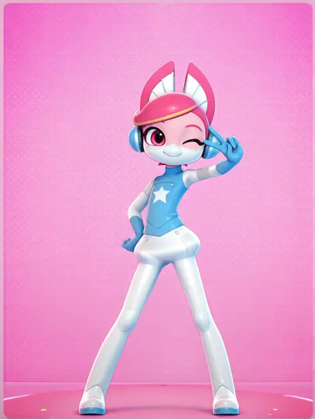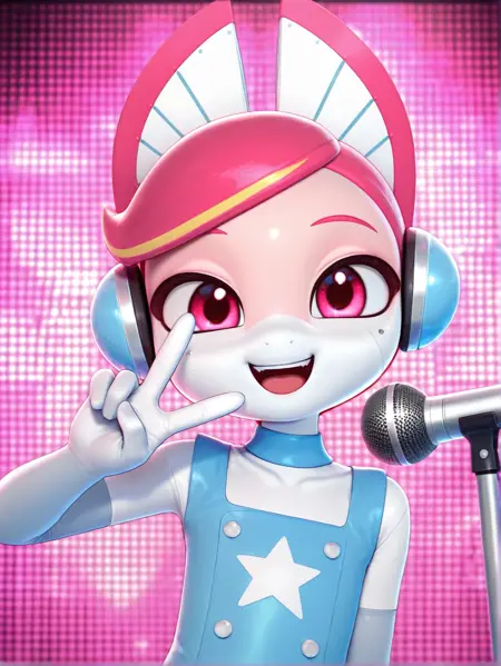 포로로의 슈퍼스타 어드벤처는 노래와 춤에서 완벽한 AI 아이돌 캐릭터입니다. 별 모양과 고양이 귀를 연상시키는 반원형 분할 장식이 있는 헤드셋을 착용하고 있습니다. 또한 분홍색 포니테일 머리는 눈 아래에 있으며, 나사 부분은 눈물점처럼 제작되었고, 동공은 분홍색입니다. 이 캐릭터는 AI이지만 성별 자체에 큰 의미를 두지 않으며, 외모나 곡의 분위기를 보면 베이스를 기반으로 한 여성 아이돌로 여겨집니다.