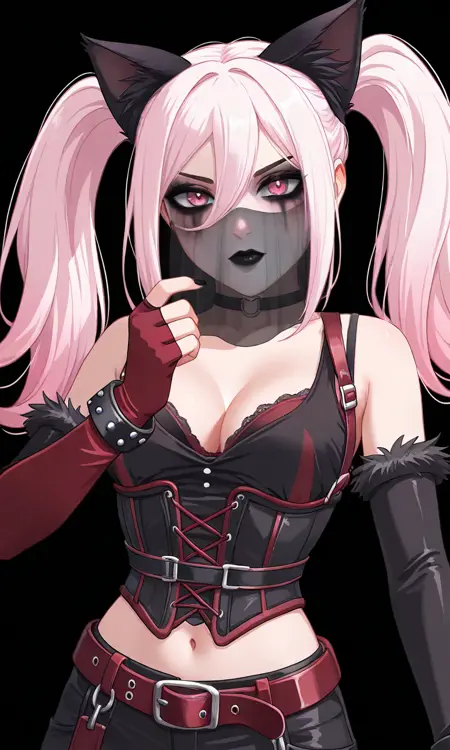 | 训练词汇 | gothic,black veil,mourning veil,veil covered face,see-through veil,torn veil,white facepaint,black eyeshadow,black lips,runny makeup,black choker,choker jewel,black bra,red bra,black tank top,cleavage,black corset,red-trimmed corset,fur-trimmed gloves,lace-trimmed gloves,asymmetrical gloves,black gloves,red gloves,studded bracelet,navel,red belt,black pants,fingerless gloves,elbow gloves已复制! |