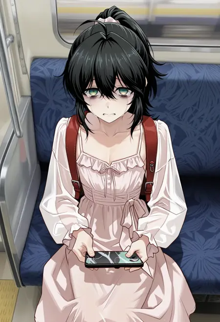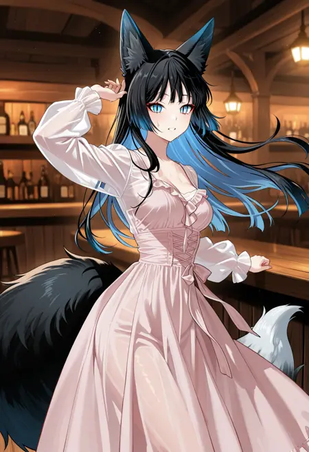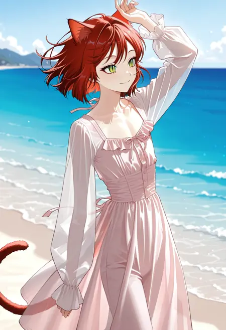 Triggered words: quarkashdress,dress,long dress,long sleeves,frills dress,pink dress,see-through,