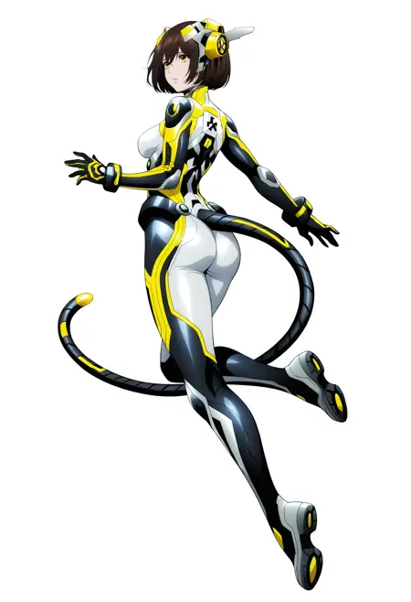 플러그수트 복장: 바디수트, 꼬리, 가슴, 중간 크기 가슴, 몸에 딱 붙는, 헤드기어, 장갑, 머리 장식