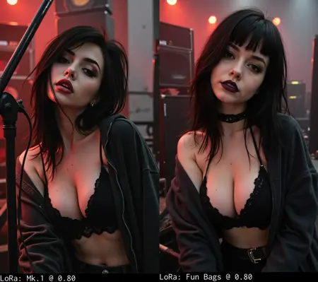 🖤 From Meme to Masterpiece: This LoRA was born from an accidental "failed" render attempt, an experiment chasing exaggerated body proportions, bold postures, and sexy poses during the creation of the dataset used for FullComicishLady. Instead of discarding the results, it evolved into a bold, stylized celebration of a very specific aesthetic: goth, alt, punkish, emo, and rock-inspired women.