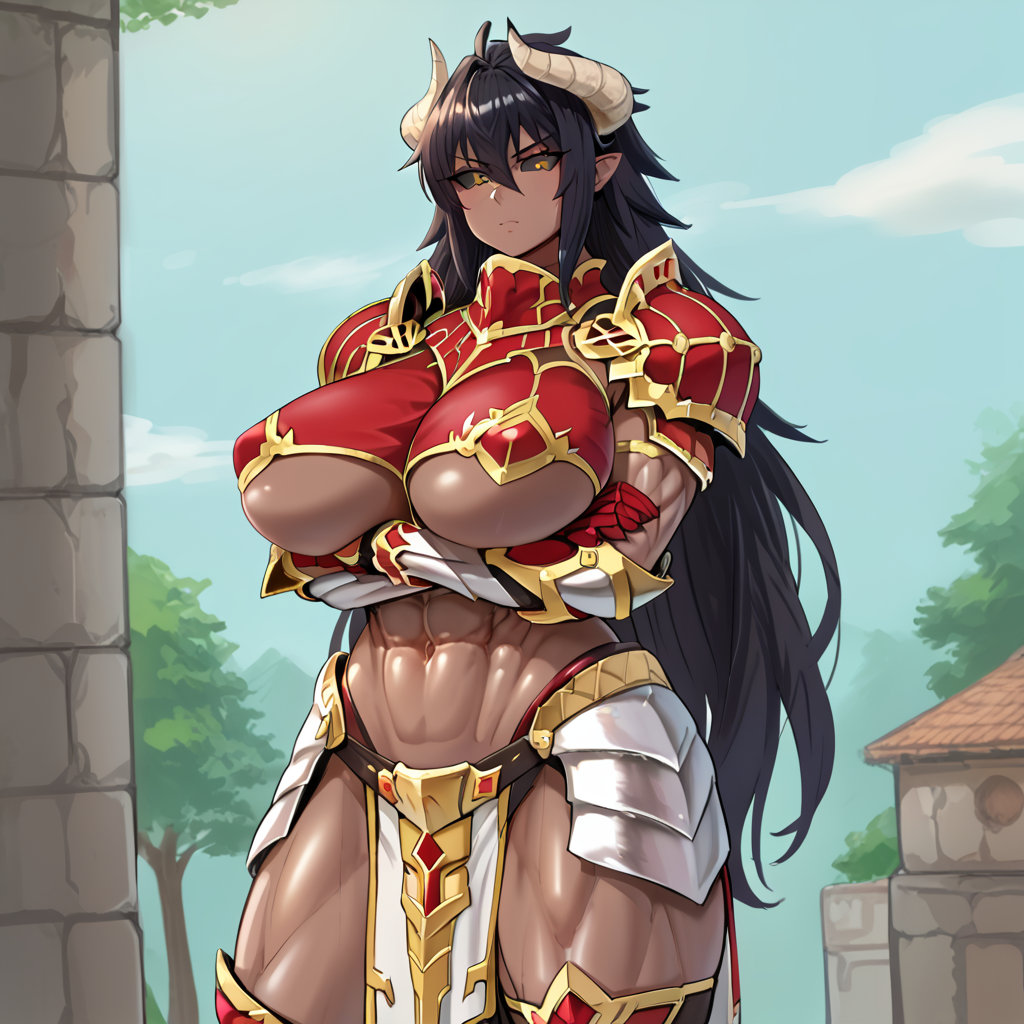 | 训练词汇 | dk_kig, 1girl, solo, dark-skinned female, dark skin, muscular female, pointy ears, yellow eyes, black sclera, very long hair, black hair, hair between eyes, horns, huge breasts, thick thighs, abs, thighs, armor, shoulder armor, navel, pauldrons, gauntlets, pelvic curtain, underboob, high heels已复制! dk_kig, 1girl, solo, dark-skinned female, dark skin, muscular female, pointy ears, yellow eyes, black sclera, very long hair, black hair, hair between eyes, horns, huge breasts, thick thighs, abs, nude, nipples, pussy已复制! |