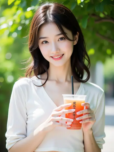これは、女性の「ワンショット」リアリスティックなポートレートであり、LoRAは顔のクローズアップ、物を手に持つハーフボディ、以及ストリートでのフルボディショットを考慮しています。LoRAは特別な手動修正なしに、商業レベルのディテールを出力できます。