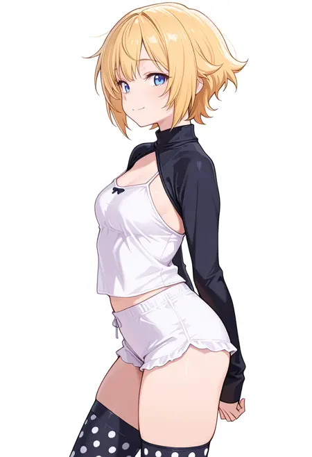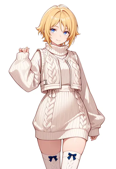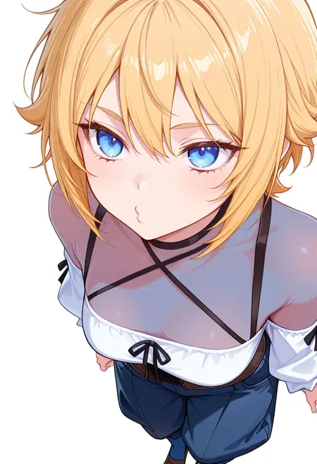 chris_cnr, 1girl, blonde hair, short hair, blue eyes, bangs,