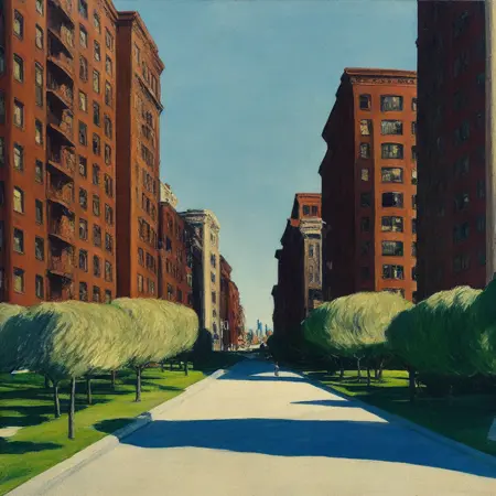 호퍼의 작품은 세심한 묘사와 주제에 대한 분위기 및 분위기를 포착하는 능력으로 특징지어진다. 그는 일상적인 미국의 삶을 그린 작품으로 가장 유명한데, 자주 빈 방이나 폐허가 된 거리에서 외로운, 고립된 인물들을 그린다.