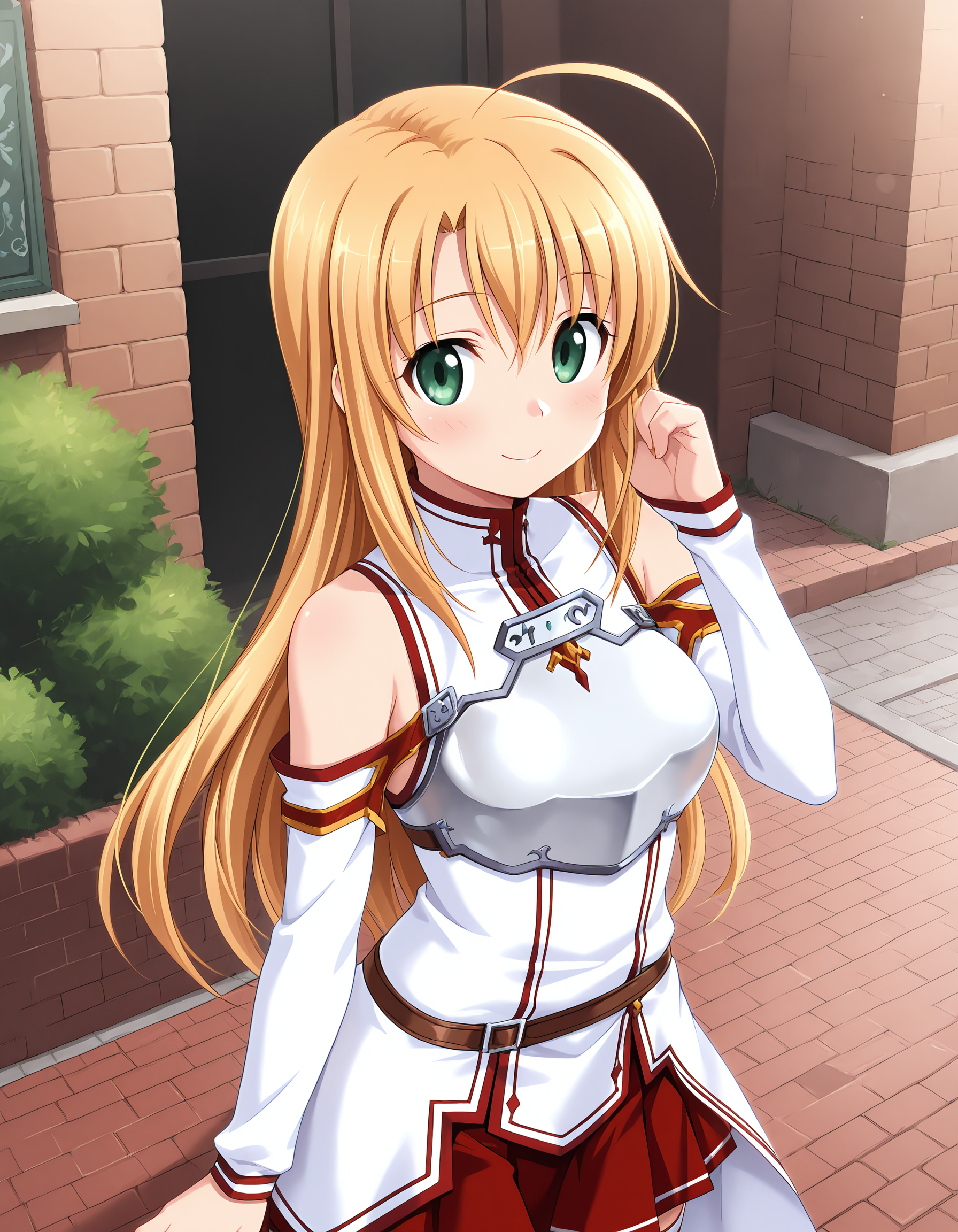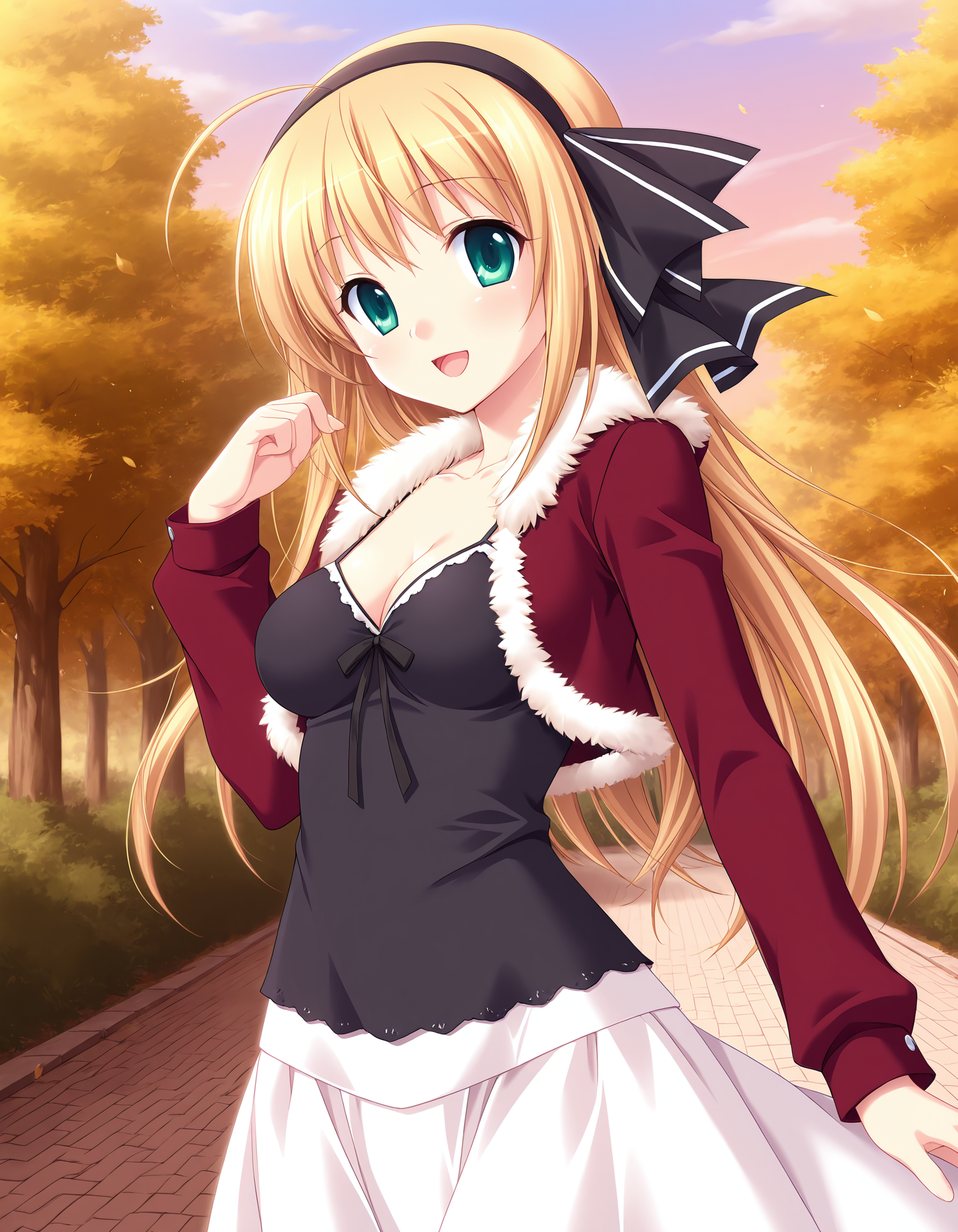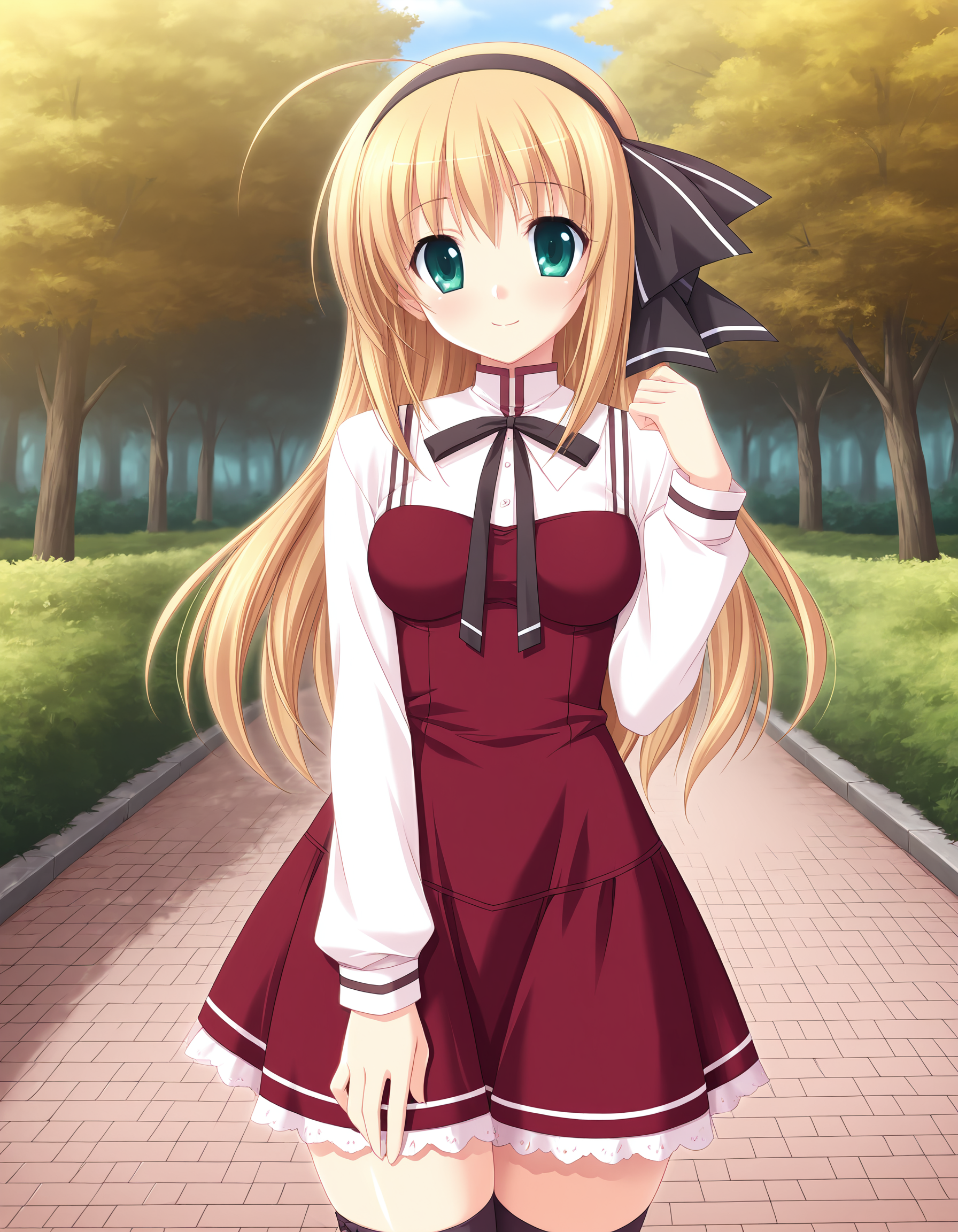 shizuka, blonde hair, long hair, ahoge, green eyes, medium breasts,
