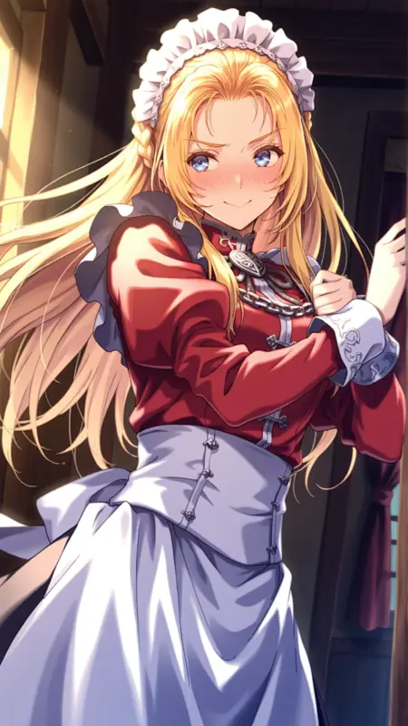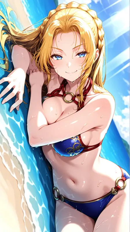 外見: 青い目、金髪、長い髪、編み込み