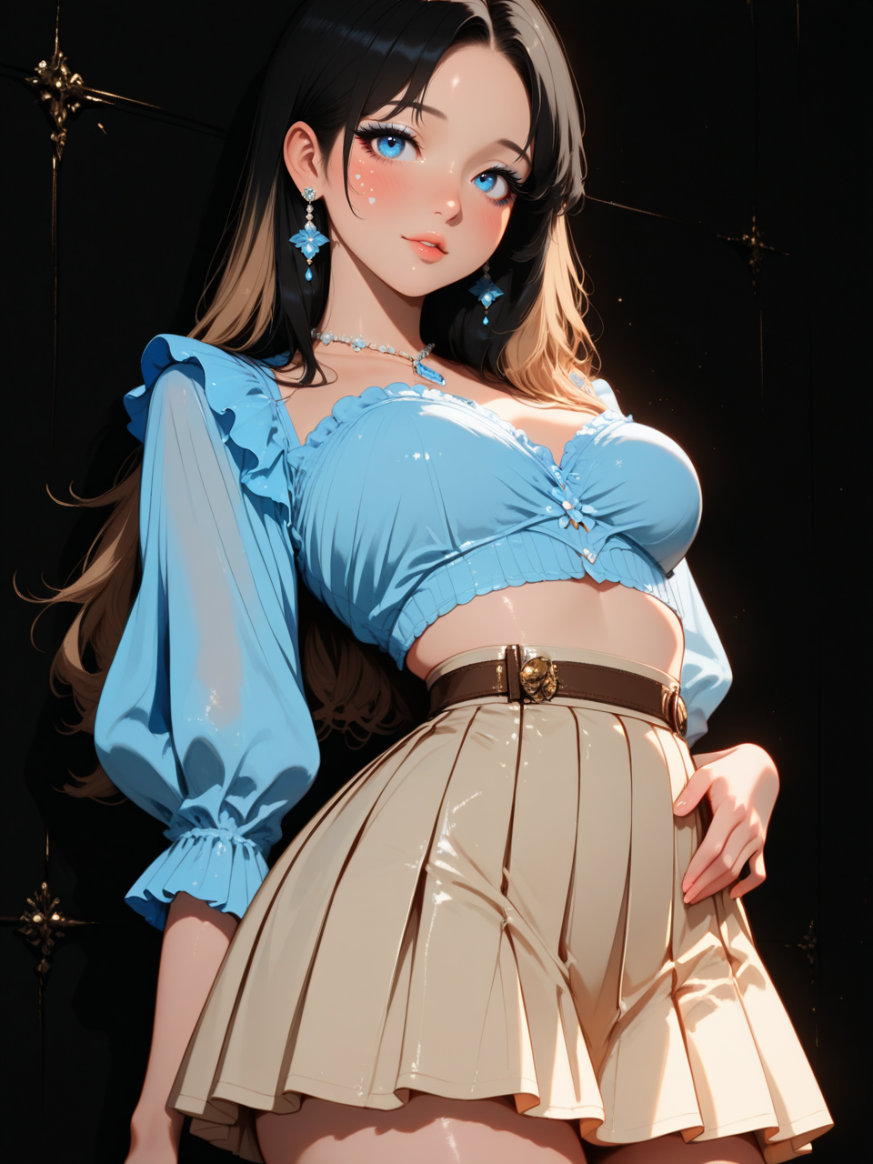 Moonmilk Contrast 是一个专注于柔和、干净色彩对比的检查点。它强调pastel色与浓郁色调的平衡融合:柔和的蓝色、乳白色和深黑色构成了一种鲜明却温婉的调色板。肤色以柔和的光泽和自然色调呈现,而头发与布料的高光部分则光滑有光泽,且不会喧宾夺主。该调色板建立在冷暖色调的视觉和谐之上,增强了材质纹理与情感美学的表现力,非常适合以光影与色彩为核心的肖像插画。
