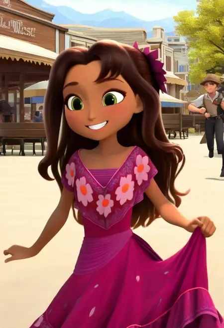 Luckypressc,brown hair, long wavy hair, green eyes,dark skin,