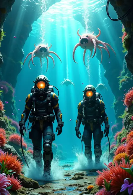 We invite you to dive into a world where science fiction meets oceanic mystery — a place where Earth’s technology collides with alien ecosystems.