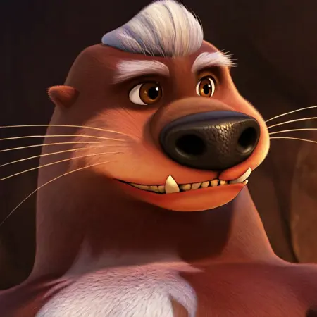 McMahon, solo, furry male, older man, brown fur, otter, white hair, whiskers, tail, thick eyebrows, brown eyes, tall, muscular, chest hair, fangs,