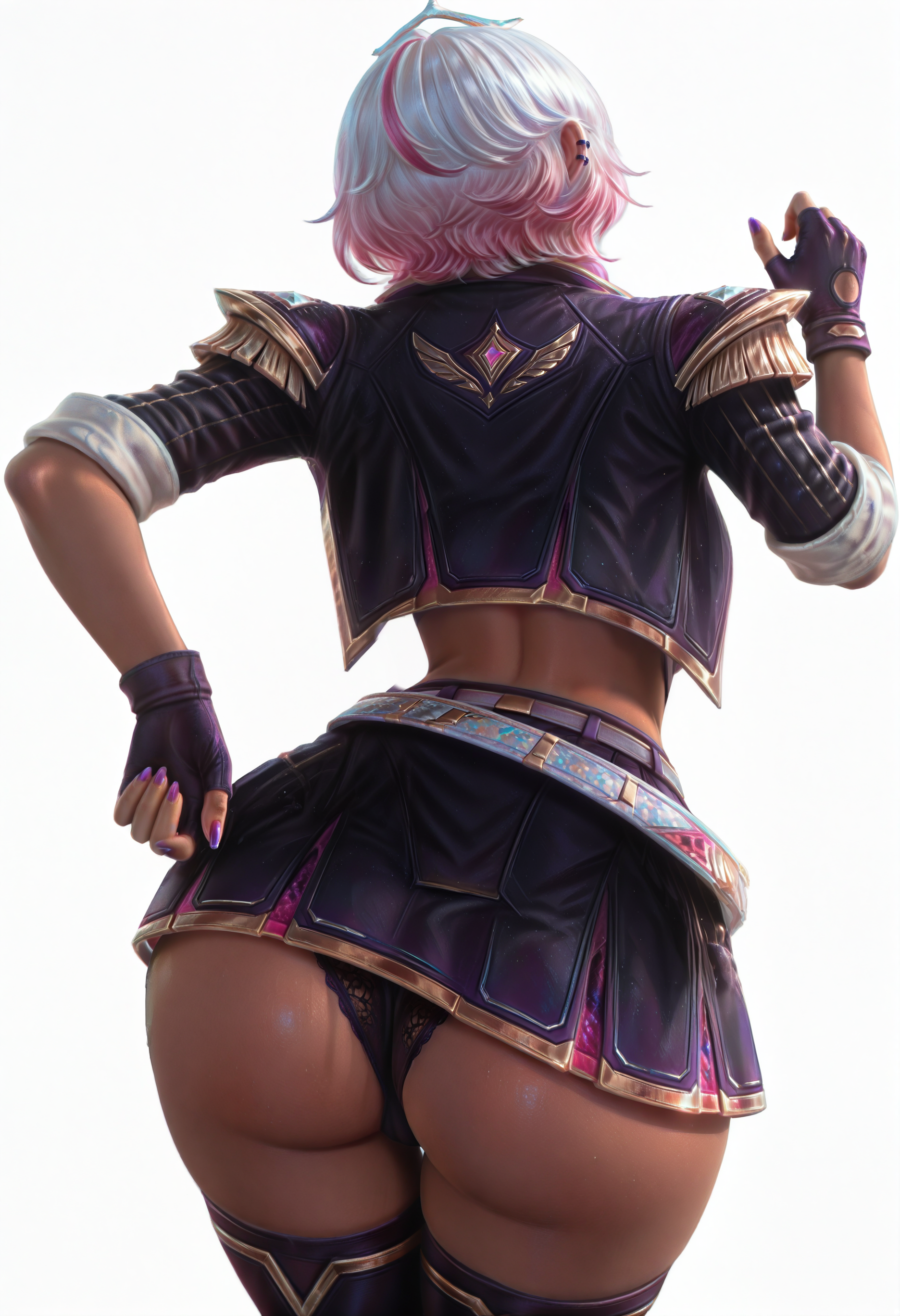 하의 – two-tone skirt, purple_thighhighs, multiple belts, jewelry belt