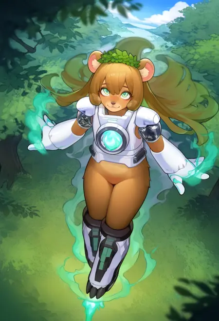 推荐的正面描述:slcpth, 人形, 绿色眼睛, 胸甲*, 手套*, 火箭靴*