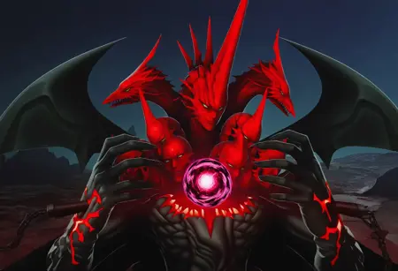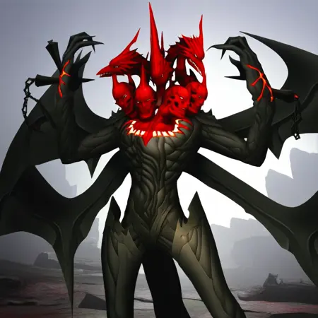 SMTV_Satan, black skin, multiple heads, demon wings, red skin heads