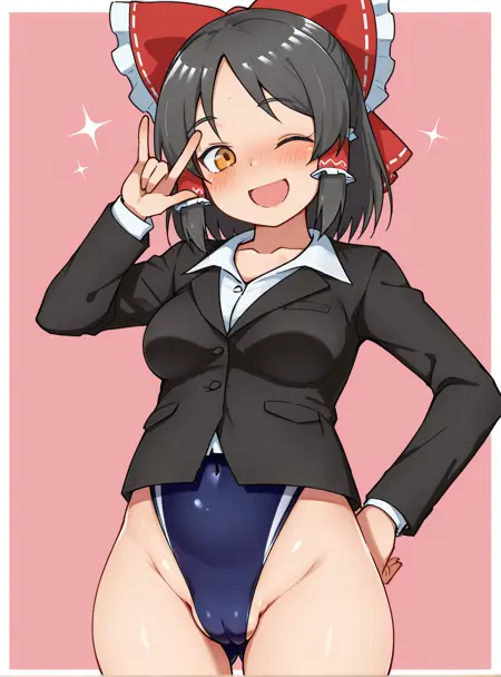 基础身体、头发和面部:[[ sananana (cookie),棕色眼睛,黑发,侧发,分界刘海,荷叶边发带,荷叶边发管,红色发带,博丽灵梦 ]]