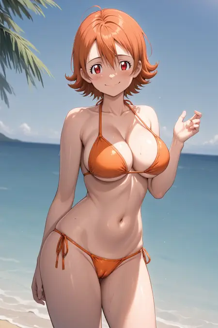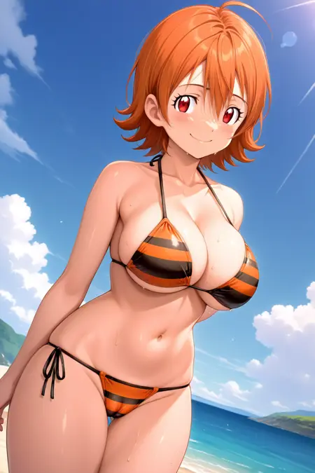 Activation tag: takenouchi_sora; use along with short hair, orange hair, ahoge, flipped hair, and red eyes.