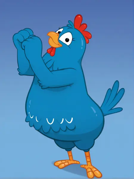 洛蒂·多蒂鸡是产品/音乐卡通《洛蒂·多蒂鸡》的主角。她是一只蓝色母鸡,拥有红色鸡冠、白色斑点和橙色腿。她是奇卡太太的女儿,紫色公鸡的妻子,小黄鸡和其他小鸡的母亲,红鸡、绿鸡和紫鸡的妹妹,以及小鸡的嫂子。她在第一卷的介绍中被提及,并在以她名字命名的歌曲中首次亮相。