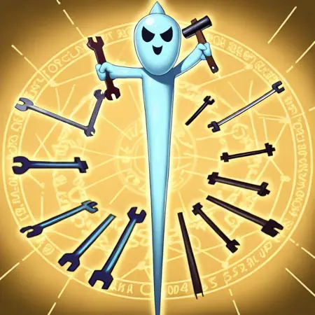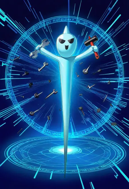 SMT_Gremlin, holding hammer, holding wrench, light blue body