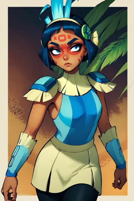 Trigger + Appearance: bhqueennai, dark skin, dark-skinned female, facial mark, no pupils