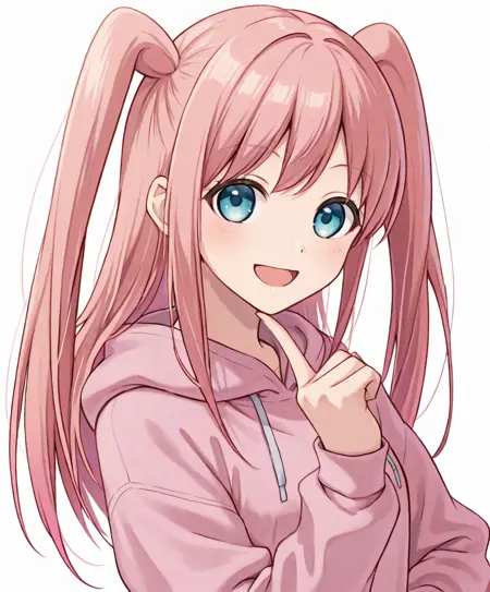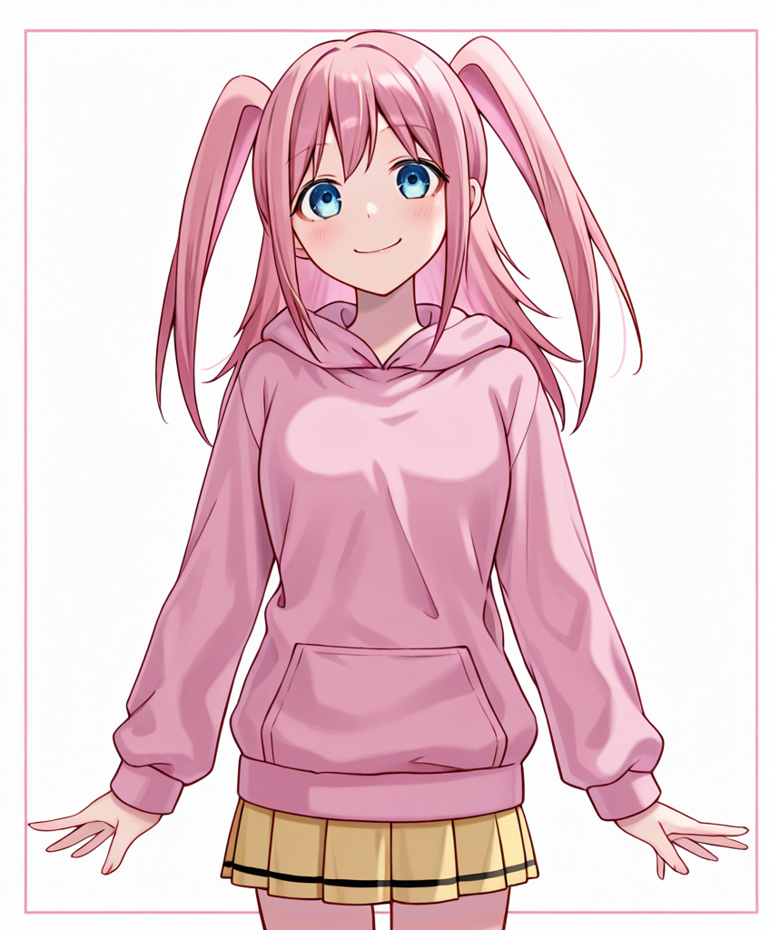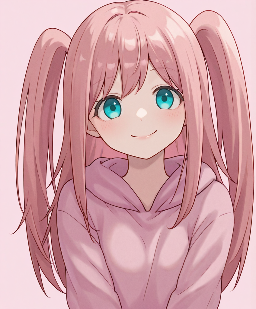 Watamote의 네모. 트레이닝에 사용한 모든 이미지가 그녀의 평소 헤어스타일을 묘사하지만, (long hair:1.5)를 사용하지 않으면 대부분의 체크포인트는 그녀의 머리를 완전히 트윈테일로 묶으려고 고집한다.