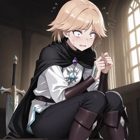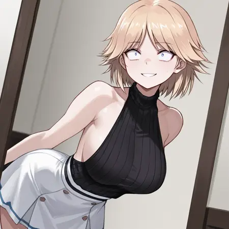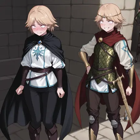 prompts: appereance: Neia, blonde, small pupil, eyebags