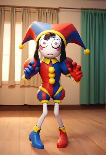 Pomni 这个神奇的数字马戏团作品权重为0.8,尽情享受吧。使用Lora XL与DPO技术的实验性自然语言: