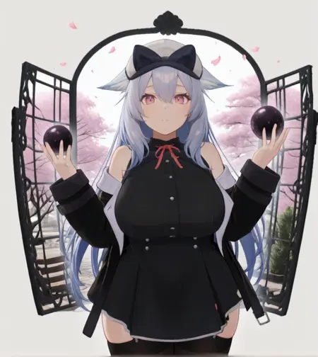 | 训练词汇 | 桔梗,long hair,colored inner hair,white hair,blue hair, animal ears,fluffy ears,hair flaps, hair between eyes, newsboy cap,white hat, pink eyes, black jacket,buckles, sleeveless dress,black dress,short dress,neck ribbon,red ribbon, black thighhighs,garter straps, ankle boots,black shoes, straight-on,white background,已复制! |