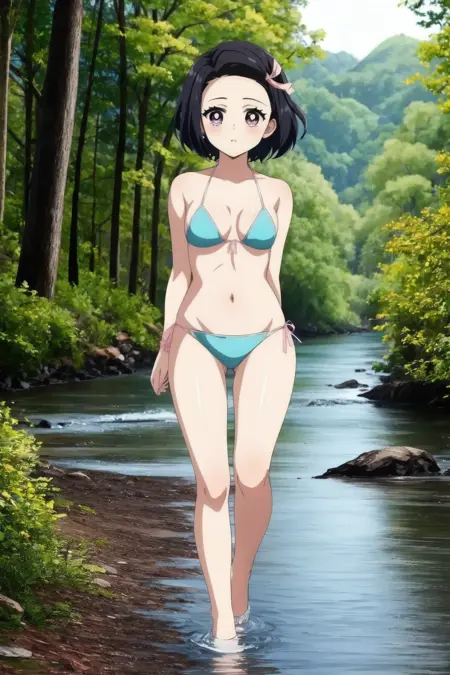 我正在制作自己的Nezuko LoRA,在寻找图片时,我发现了一幅“如果Nezuko是卖煤的那个人,最终成为鬼杀队队员”的脑洞艺术作品。我不希望将这个设定与她平时的服装混在一起,因为我担心标签会互相渗透,所以我将她独立设计出来了,这就是她!