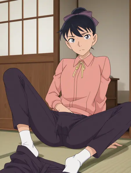 泉谷枫触发1girl, kenan_quangufeng, 发带, 发髻, 裤子,
