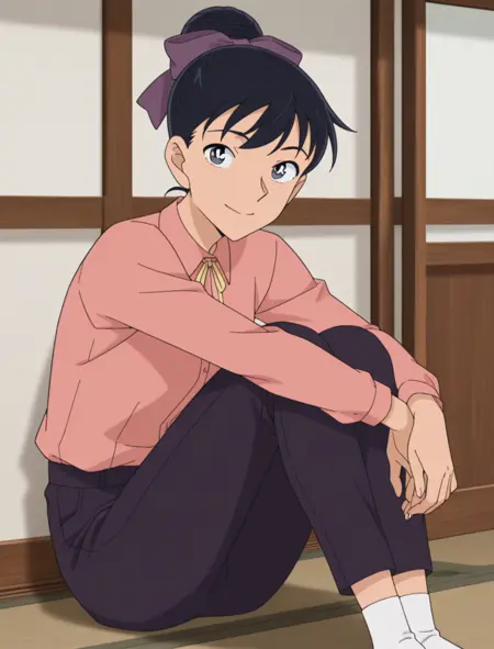 触发1girl, kenan_quangufeng, hair bow, hair bun, pants,